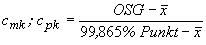 Die Fähigkeitsindexe werden für null-begrenzte Merkmale mit einer oberen Spezifikationsgrenze (z.B. Schalg, Unwucht, u.ä.) wie folgt berechnet.